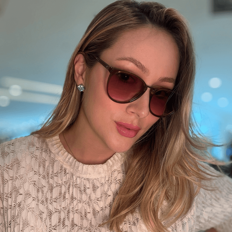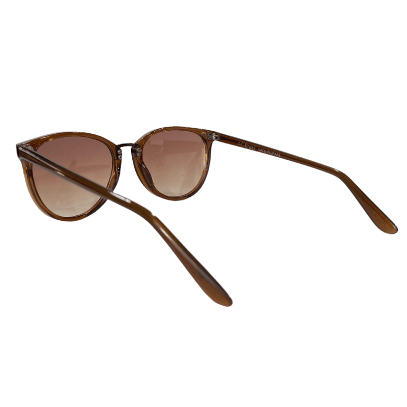 Óculos de sol modelo Joy, fabricado no Brasil. Modelo com design atemporal, redondo trazendo um traço de metal na ponte. Produzido inteiro em acetato italiano , acompanhado de lentes marrom degradê com proteção UV400 permanente. *Lente: Marrom Degradê