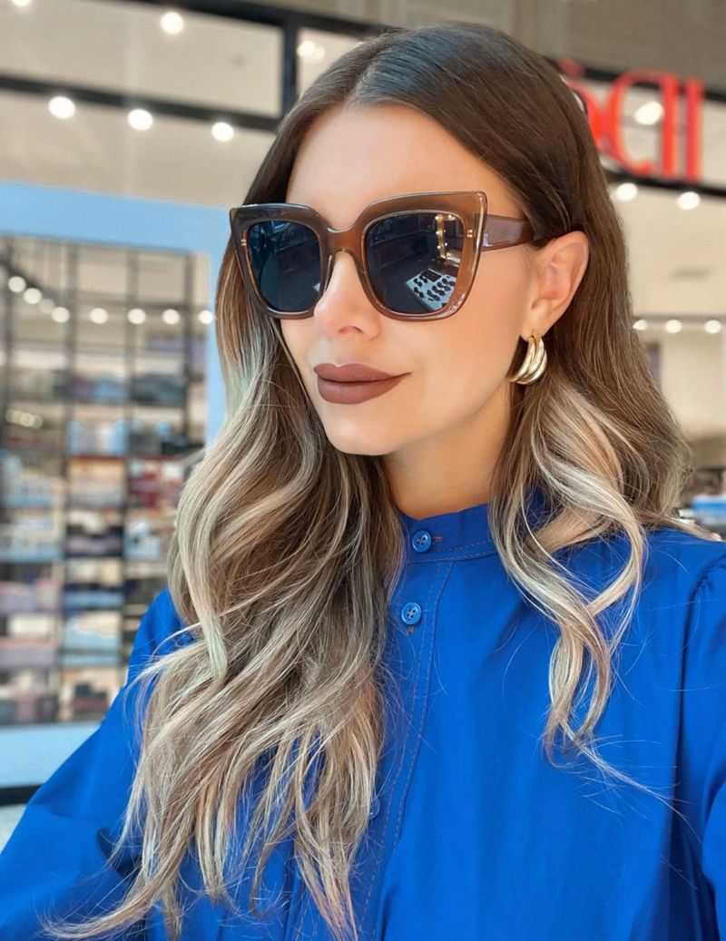 Óculos de sol Quadrado Grande Lady, produzido no Brasil em acetato Italiano, pintados a mão, com proteção UV400 permanente nas lentes. * Tamanho: Grande * Modelo: Quadrado * Lente: Azul Marinho (sem espelhado)