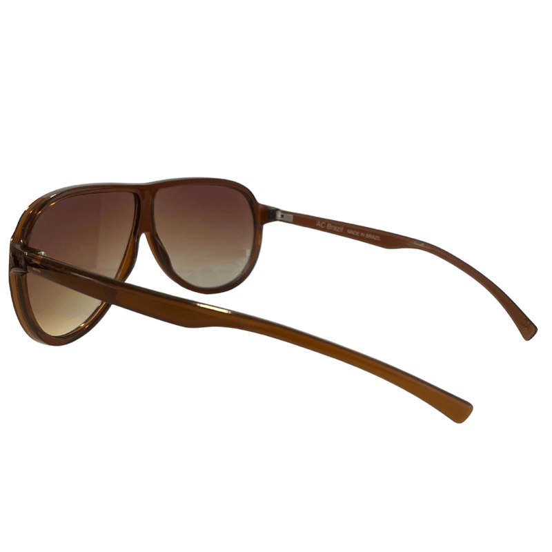 Óculos de sol fabricados no Brasil, modelo Masck, tamanho grande, haste e frontal em acetato Italiano, lente marrom degradê com proteção uv400 permanente.